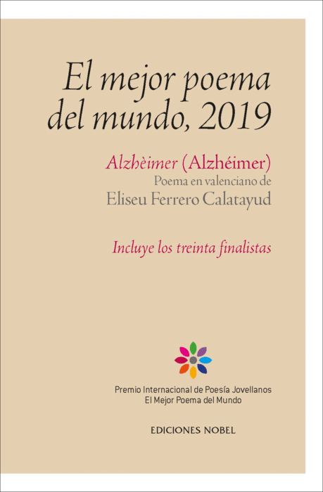 El lector tiene entre sus manos una de las antologías más interesantes de la poesía internacional actual. Un completo mosaico que reúne poetas de los más diversos países en sus lenguas originales y que aúna voces consagradas con otras recién descubiertas. No hay en el mundo premio que transite por puertas tan amplias. Cada 21 de marzo, coincidiendo con el Día Mundial de la Poesía, proclamado por Unesco, se falla este galardón creado por Ediciones Nobel para continuar el incansable espíritu quijotesco con el que nació: encontrar el mejor poema escrito en cualquier lengua y recordar al ilustre Gaspar Melchor de Jovellanos, rendir homenaje a su autor y difundirlo para que la voz de los poetas sea como una antorcha sobre la tierra oscura. Solo una cosa no hay, es el olvido, escribía Borges. Sin embargo, desde que el mundo se aferra a la palabra dicha en solución de armonía, es el olvido uno de los temas literarios por excelencia. Eliseu Ferrero Calatayud indaga, en su hermosa lengua de Valencia, en la desaparición paulatina de la memoria en un poema memorable sobre ese monstruo terrible que es el alzhéimer. Con versos sencillos y palabras claras, el poeta, aportando consuelo, expresa la naturaleza del olvido ?com l?au que sense forces, es queda a la calor de la llar?.