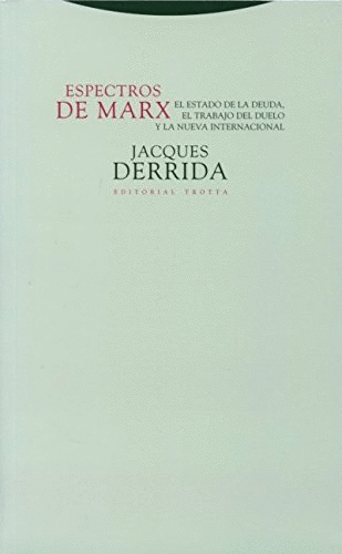 Espectros fue el primer título que Marx pensó para su Manifiesto. Derrida lo recupera en este libro para realizar una crítica de la herencia de Marx en el mundo contemporáneo, una crítica vertida desde su particular teoría filosófica: la deconstrucción.