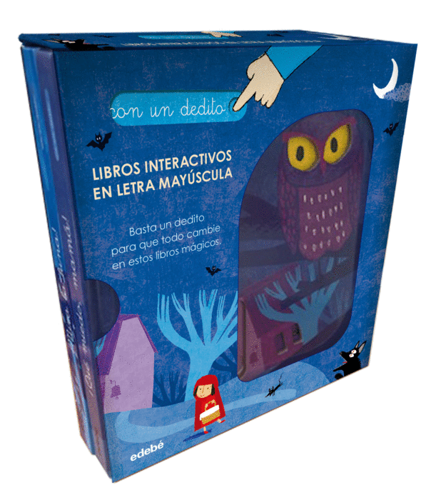 En este estuche encontrarás dos libros interactivos con letra en mayúscula que despertarán el poder de la imaginación de los más pequeños: MIRA LA LUNA y ¡QUÉ MIEDO, MAMÁ!. Dos libros reunidos en este bonito estuche para que los bebés interactúen colocando el dedo en el círculo troquelado que hay en cada escena y desde el que se puede cambiar y generar movimiento en las páginas. A través de sencillas historias, se invita a los pequeños a interactuar.