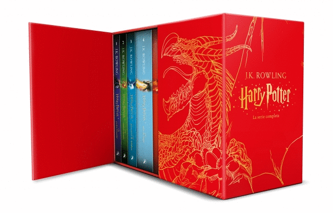 Estuche de la saga Harry Potter corrrespondiente a la casa Gryffindor, en una cuidada edición limitada con acabados de lujos y mapas inéditos en su interior. Descubre la saga juvenil más querida de todos los tiempos en una maravillosa caja escarlata, decorada con láminas doradas que muestran a Harry en su escoba volando junto a un ardiente dragón Colacuerno húngaro. Los siete títulos de la saga de Harry Potter en este estuche son: Harry Potter y la piedra filosofal, Harry Potter y la cámara secreta, Harry Potter y el prisionero de Azkaban, Harry Potter y el cáliz de fuego, Harry Potter y la Orden del Fénix, Harry Potter y el misterio del príncipe, y Harry Potter y las Reliquias de la MuerteReseñas: