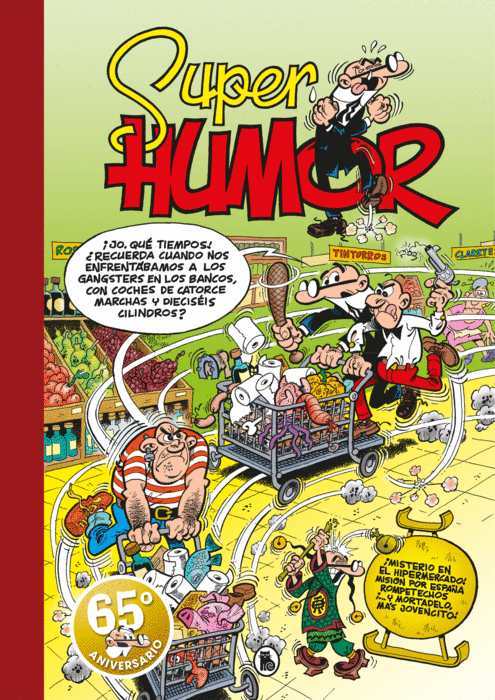 Álbum que contiene las últimas aventuras de Mortadelo y Filemón ymaterial adicional de Francisco Ibáñez Súper humor que contiene las aventuras, ¡Misterio en el hipermercado!,en donde Mortadelo yFilemón han de viajar al pueblo de Valdetrasto para mediar en unapelea entre el alcalde y el dueño del hiper de la ciudad, que estácausando serios problemas de convivencia. Misión por España, aventuraen la cual los dos agentes de la T.I.A. han de cumplir una misión queles llevará a recorrer las principales ciudades de España.Seguidamente el lector podrá disfrutar de una recopilación deRompetechos, con aventuras no publicadas anteriormente en la colección Súper humor, para acabar con páginas de la primera época de Mortadelo y Filemón.