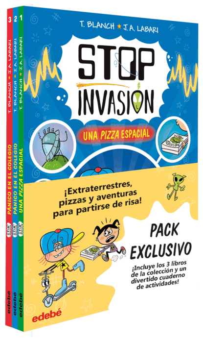Este pack contiene los tres libros de la colección STOP INVASIÓN: LLUVIA DE EXTRATERRESTRES, PÁNICO EN EL COLEGIO y UNA PIZZA ESPACIAL Si te gustan las aventuras extraterrestres, esta es tu colección ideal. Me llamo CORNELIA y hasta hace muy poco era una niña de lo más normal y corriente. Pero, desde que conozco a HIP, mi mejor amigo, y HOP, un patinete muy especial, mi vida ha cambiado por completo.